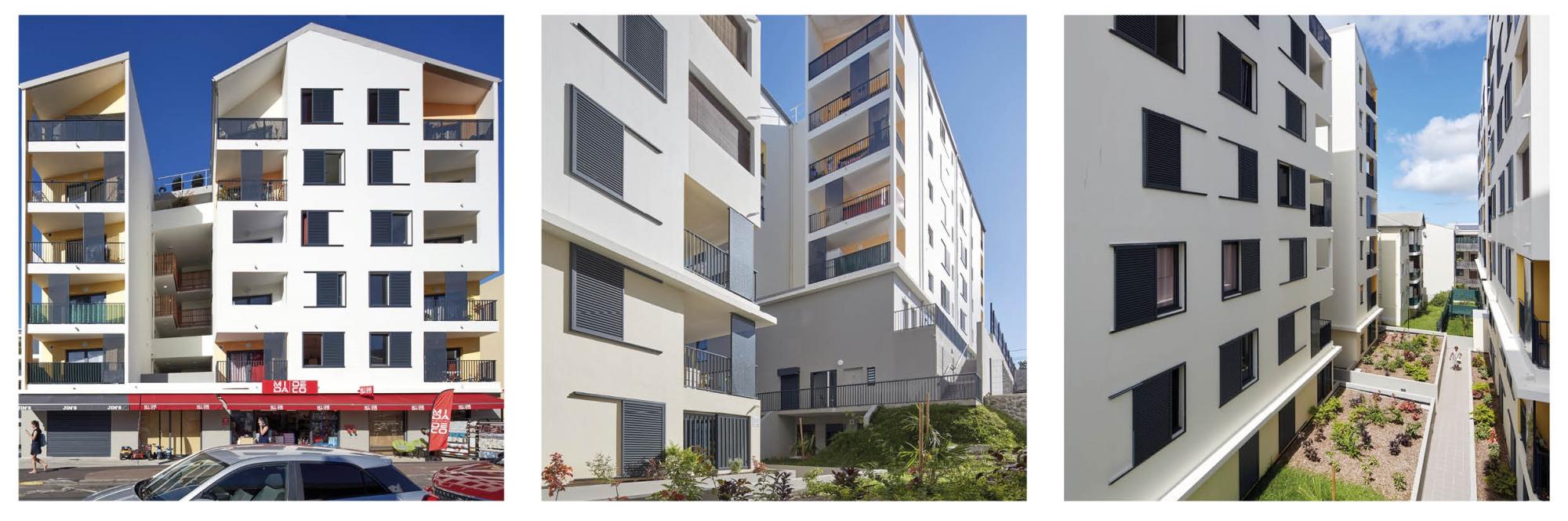 Cette résidence située en centre-ville du Tampon accueille 93 logements à vocation sociale, 30 logements RPA ainsi que des bureaux et des commerces.