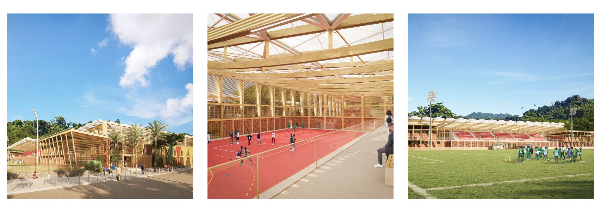 Construction, restructuration et aménagement du complexe sportif de Passamaïnty, comprenant un gymnase multisport, un terrain de football, un plateau polyvalent couvert de 1000 m², une médiathèque réhabilitée, un restaurant et un local commercial.